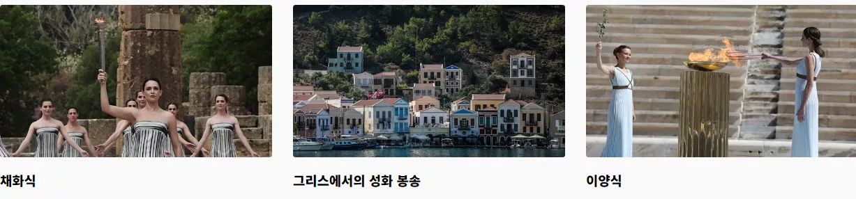 올림픽 성화 봉송은 전통적으로 고대 올림픽의 발상지인 그리스 올림피아에서 시작됩니다. 여기서 채화된 성화는 그리스 전역을 순회한 후 프랑스로 이동합니다.